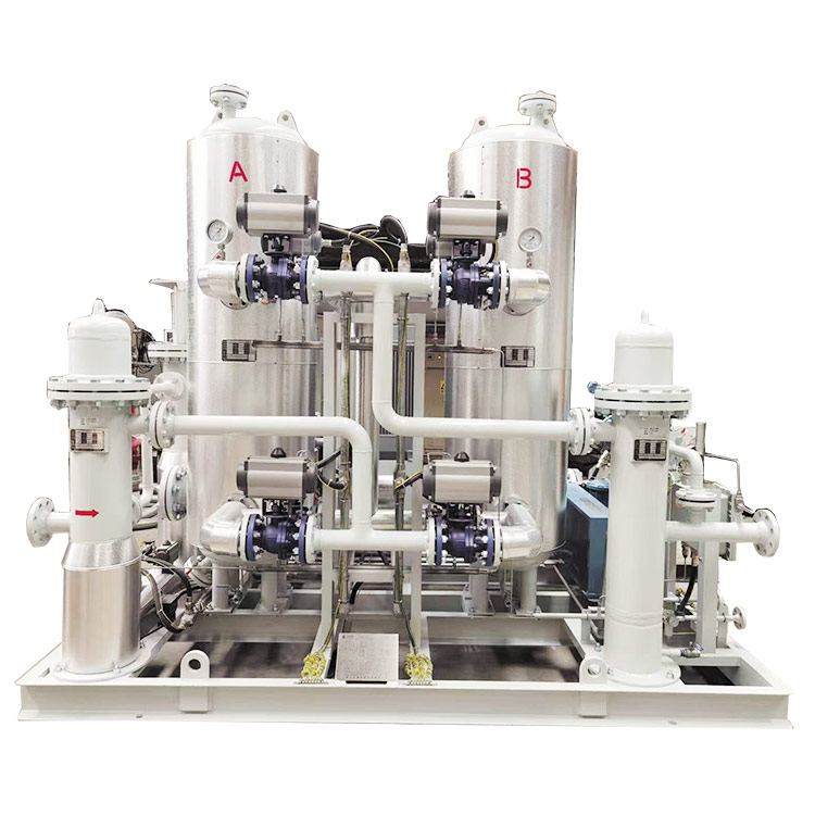 - Original hot nitrogen regeneration process reduces energy consumption by 30% compared to traditional electric heating regeneration. Integrated waste heat recovery system significantly improves energy efficiency.